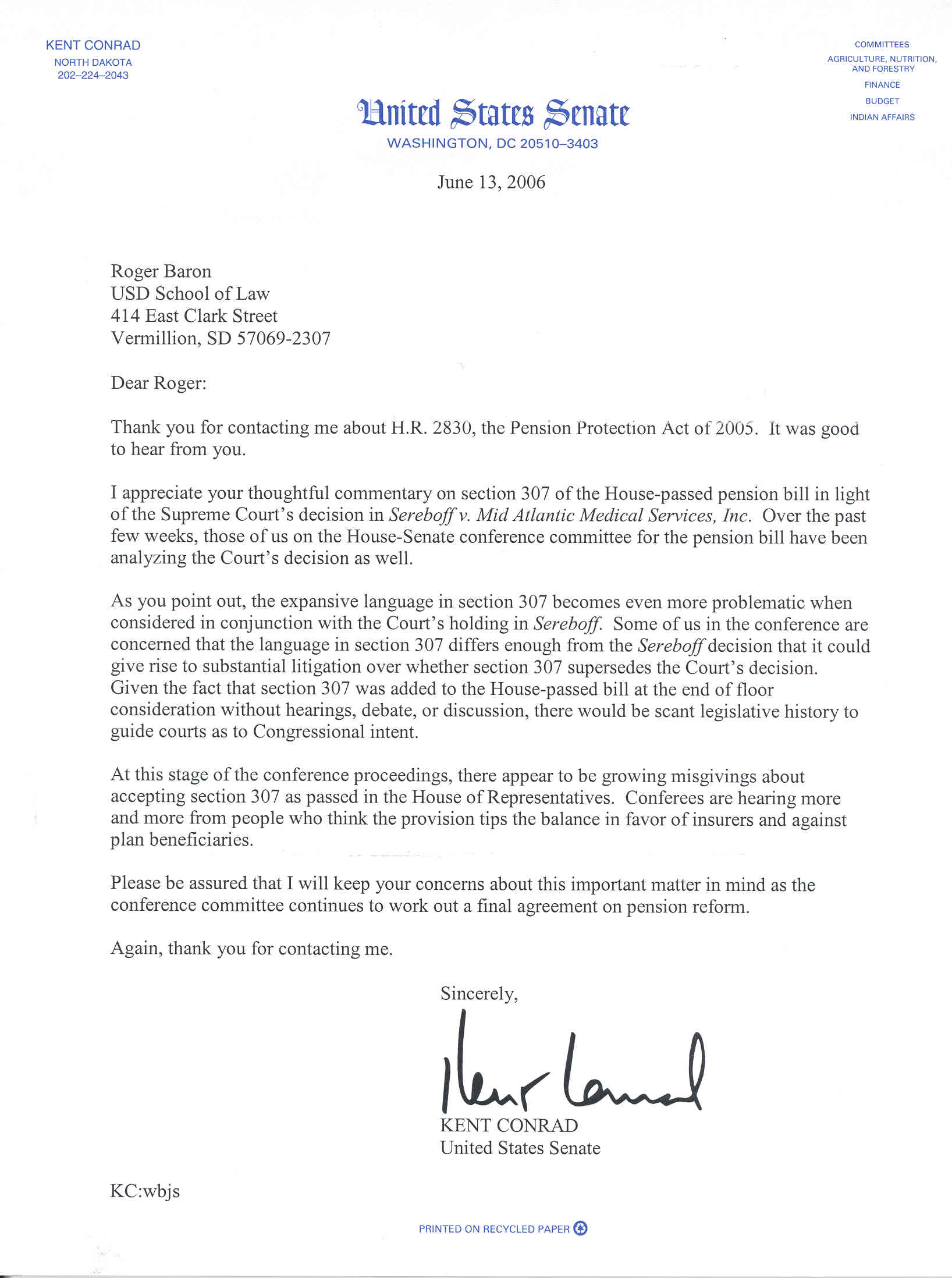 When Congress was in the process of passing the Pension Reform Act of 2006, there was an effort to include an unqualified right of reimbursement in favor of ERISA insurers. The House of Representatives included such a provision in its version. Many, including myself, lobbied the Senate/House conference committee for the purpose of defeating this provision. Eventually the measure was removed.